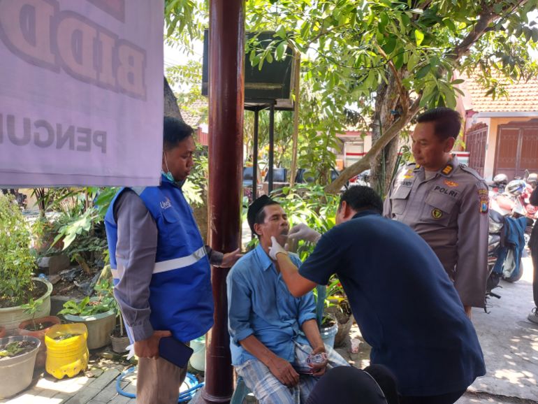Ahmad Ichsan, whose 14-year-old son Arif Affandi is believed to be trapped, wiped away tears and murmured a prayer as doctors from the neighbouring city of Surabaya prepared to take a buccal swab.